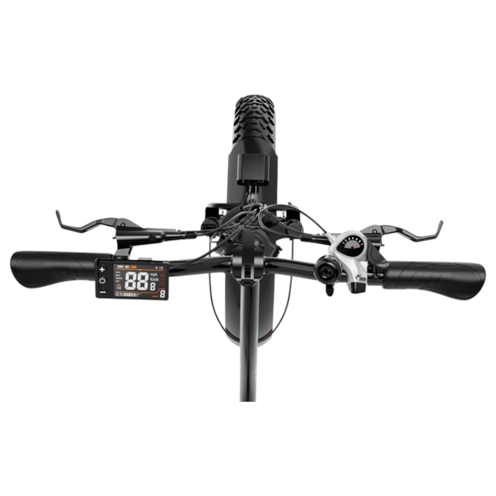 Incluye frenos de disco hidráulicos, transmisión Shimano de 7 velocidades, pantalla LCD con retroiluminación y faros LED para mayor seguridad y control.
